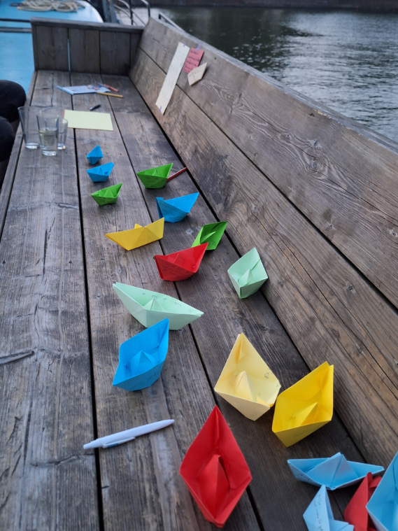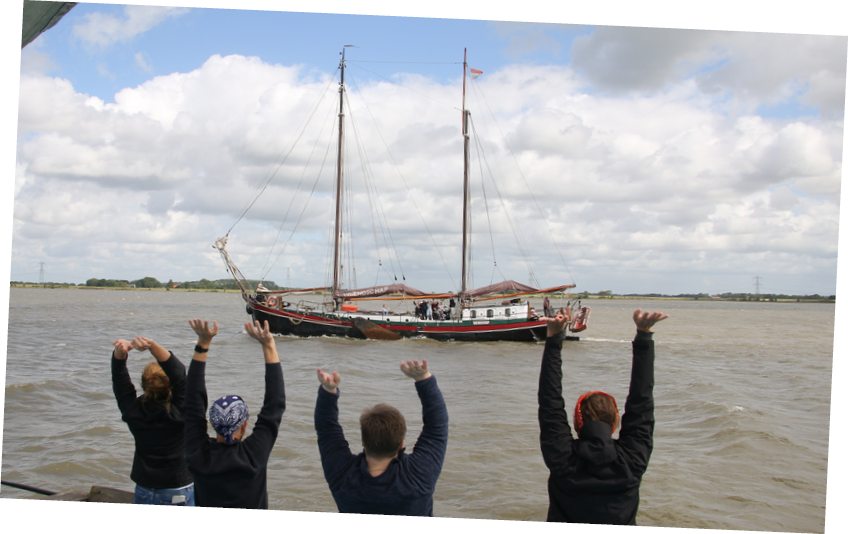 Am sechsten Tag ein letztes Mal ablegen, Segel hissen – absolute Flaute. Die Boote wollten uns nicht loslassen, so dass wir mit den Motoren der Schiffe wieder nach Enkhuizen fuhren. Aus dem „Hallo, ihr Landratten“ von Kim am ersten Tag wurde ein „Auf Wiedersehen, ihr Seeratten“.
